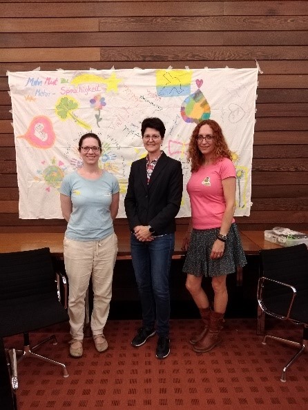 Frau Dagmar Geschwind, Geschäftsbereichsleitung Jugend, Bildung, Integration, empfing die Eltern und Kinder mit wertschätzenden Worten. Sie hob das Engagement jedes Einzelnen hervor und würdigte dieses für Integration und Teilhabe. Im Anschluss überreichten Ricarda Brecher, KoBIZ, und Judit Jacobs, Abteilung Jugend und Familie - beide Programmkoordination Rucksack und Griffbereit - Urkunden an die Elternbegleiterinnen. Auch die Eltern bekamen Anerkennung für ihre Bereitschaft, sich wöchentlich mit den Elterngruppe zu treffen und gemeinsam ihrer Kinder zu unterstützen.
