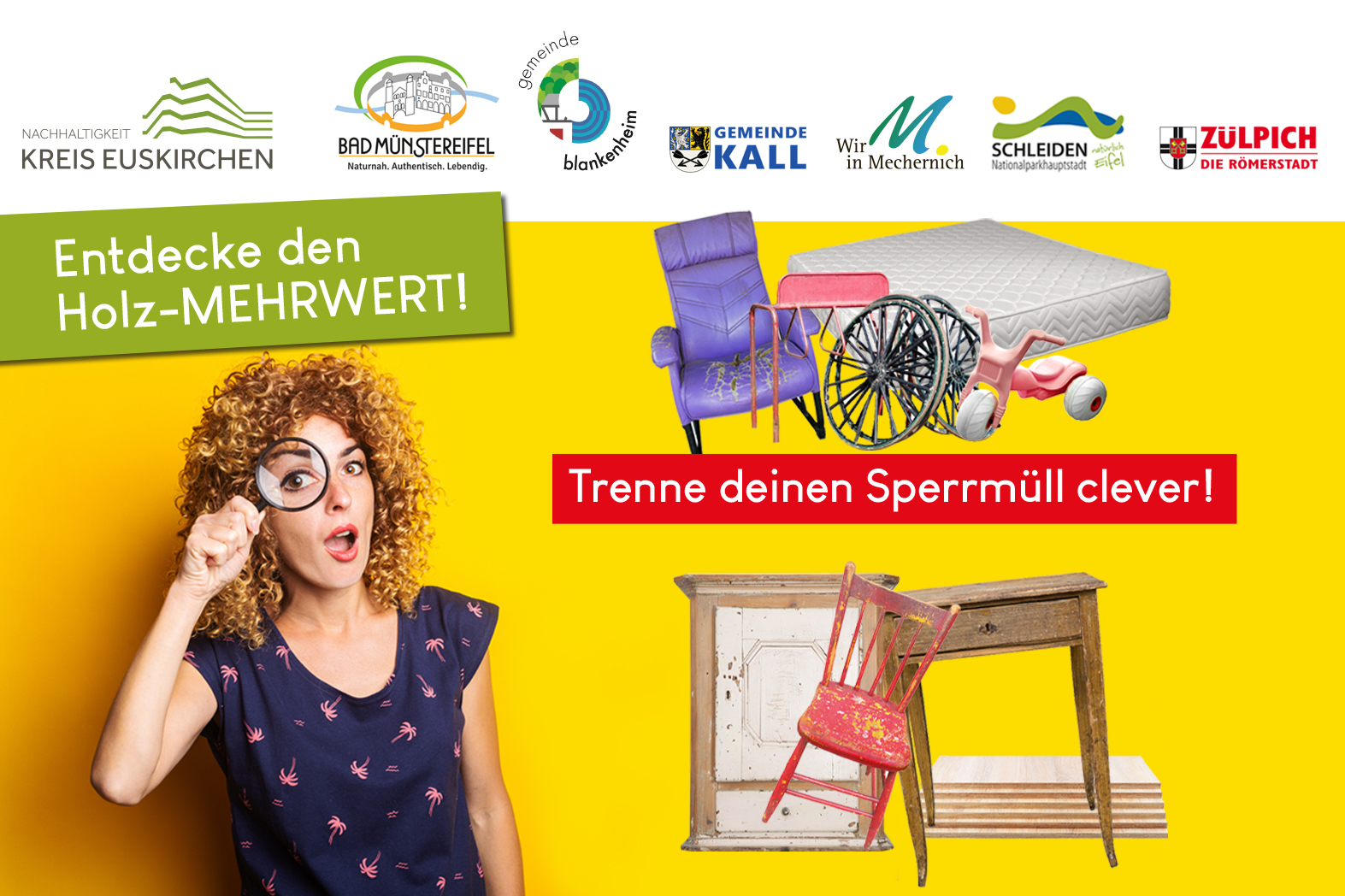 Ab Januar 2026 heißt es zusätzlich zu Zülpich auch in Bad Münstereifel, Blankenheim, Kall, Mechernich und Schleiden „Holz ist Mehrwert – Trenne deinen Sperrmüll clever!“.
