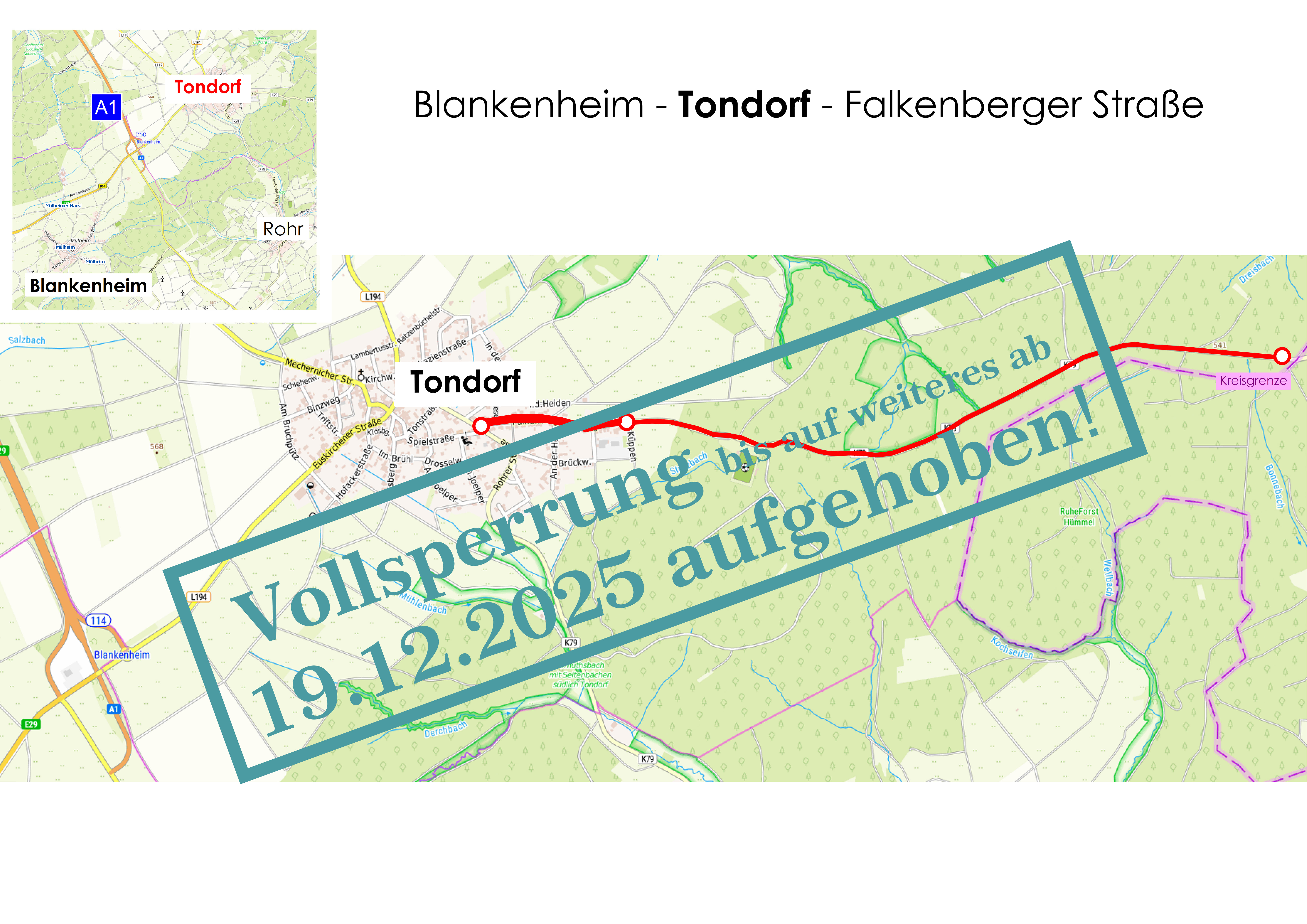 Im Wesentlichen werden jedoch die beschädigten Bordsteinanlagen und Entwässerungsrinnen in der Ortsdurchfahrt Tondorf erneuert. In diesem Zusammenhang und in Verbindung mit der Erneuerung der Trinkwasserleitung sowie der Überarbeitung der Straßenbeleuchtung erneuert die Gemeinde Nettersheim gleichzeitig die Gehwege. Gleichzeitig nutzt die e-regio die Maßnahme zur Verstärkung des Stromnetzes.